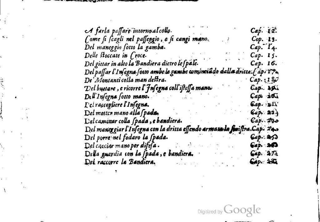 | Del passar lʼInsegna sotto ambe le gambe cominciando dalla dritta. | Cap. 17. |