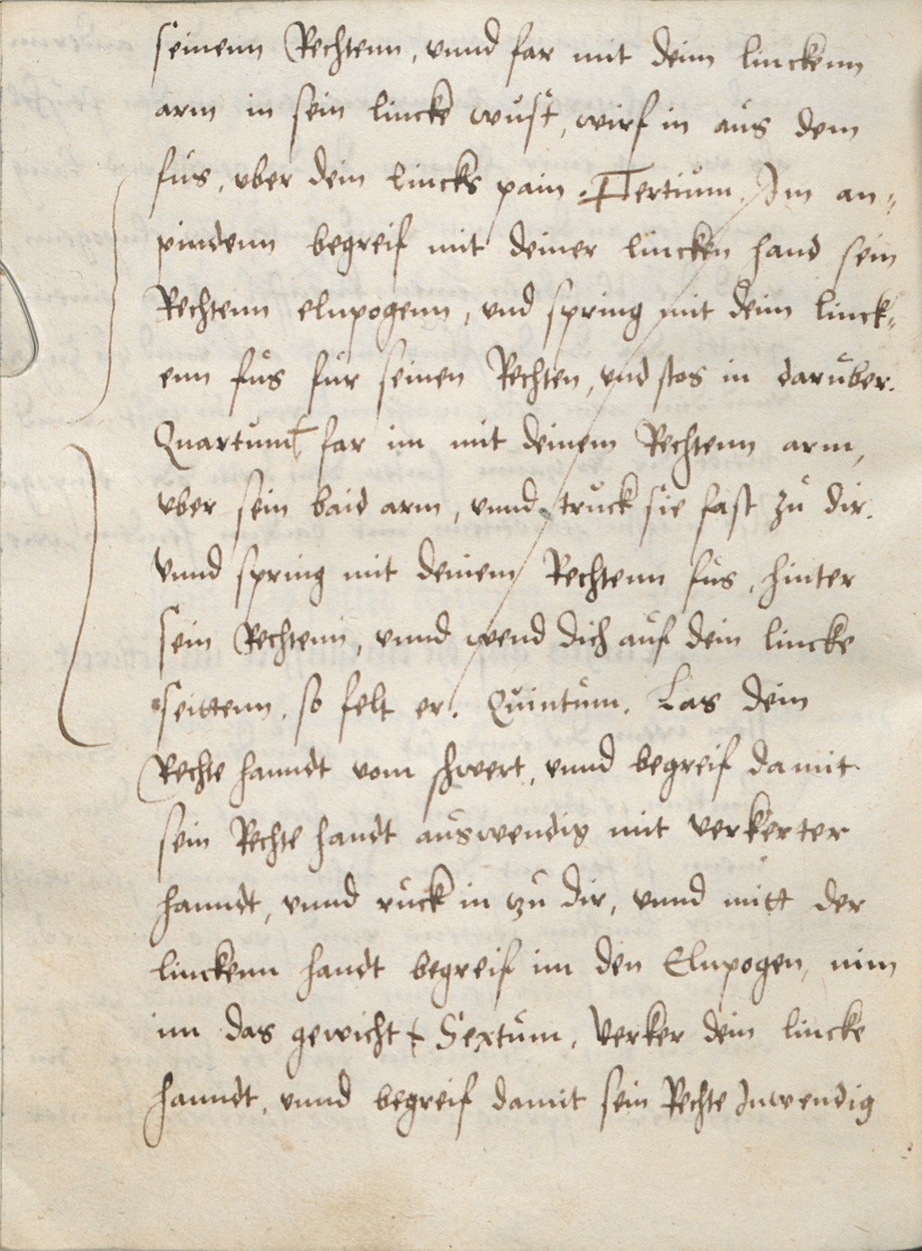 Las dein Rechte hanndt vom schwert, vnnd begreif damit sein Rechte handt auswendig mit verkerter hanndt, vnnd ruck in tzu dir, vnnd mitt der linckenn handt begreif im den Elnpogen, nim im das gewicht.