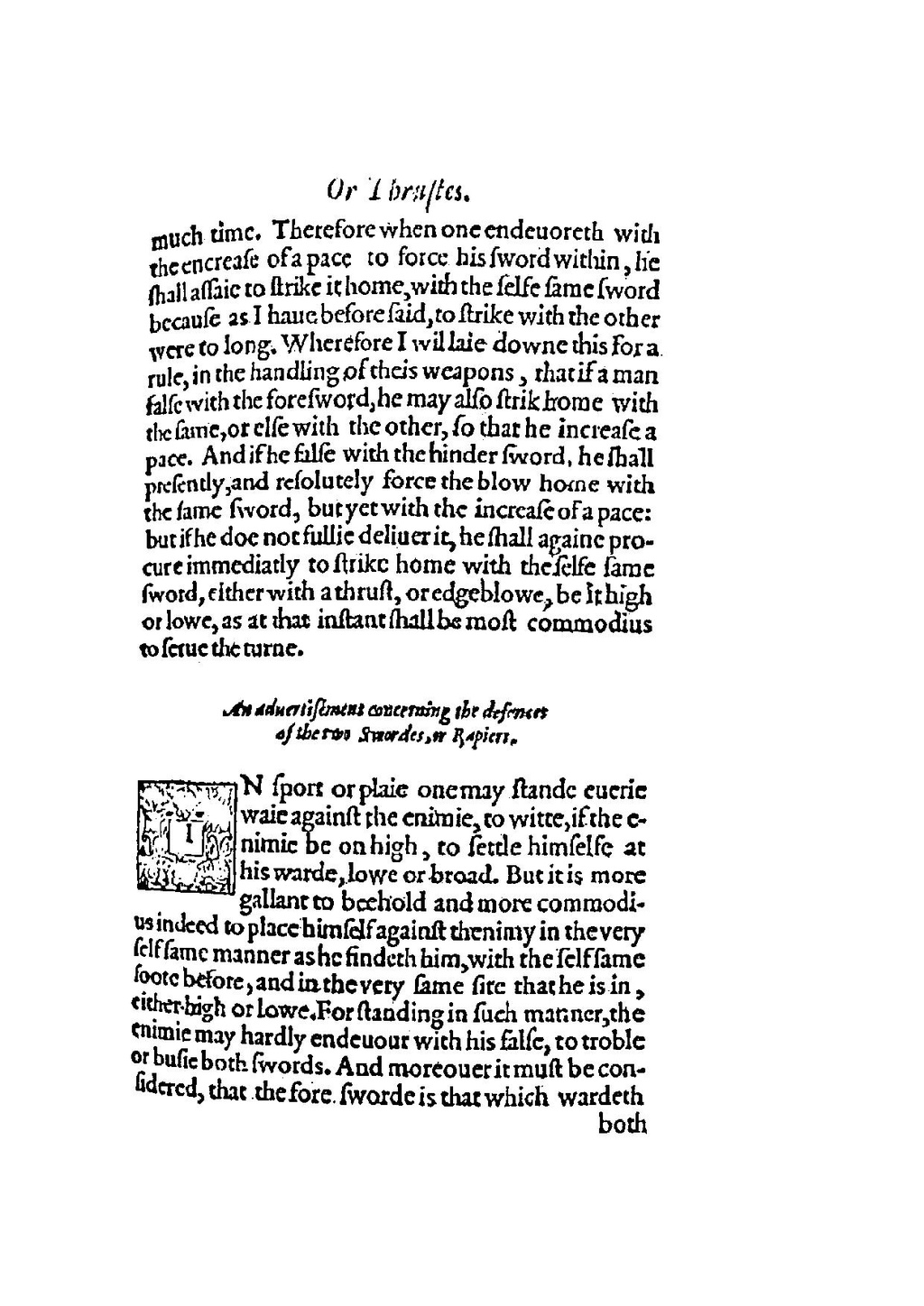 An aduertisement concerning the defences of the two Swordes, or Rapiers.