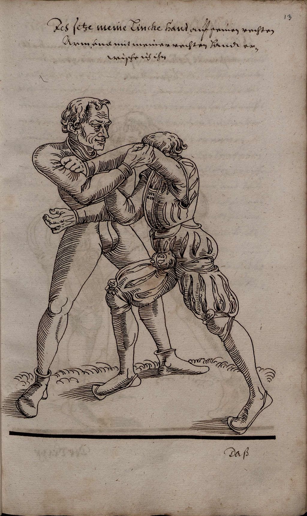 Ich setze meine Lincke hand auf seinen rechten arm, vnd mit meiner rechten hand erwische ich ihn