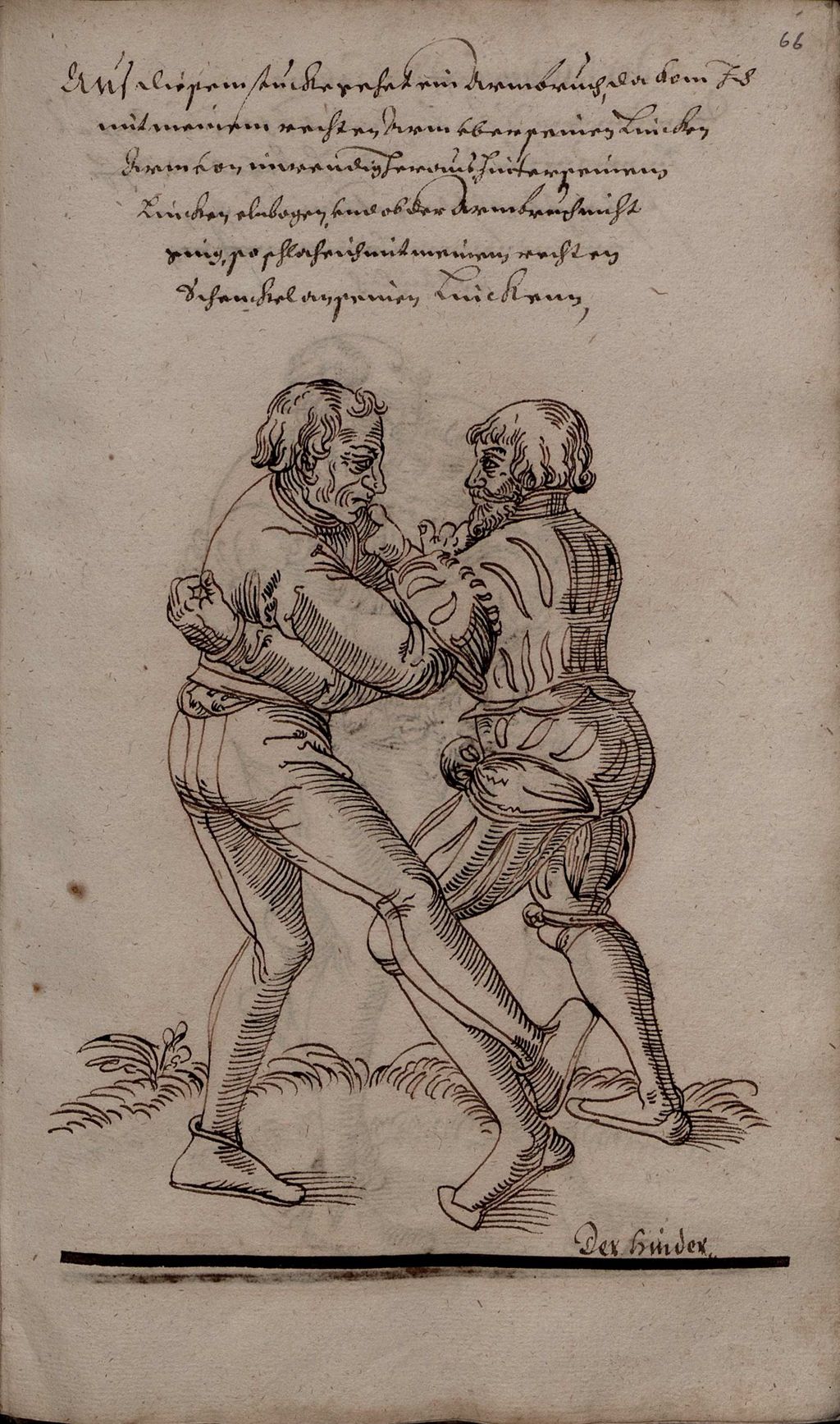 da kom ich mit meinem rechten arm vber seinen lincken arm von inwendig heraus hinter seinen lincken elnbogen, vnd ob der armbruch nicht ging, so schlache ich mit meinem rechten schenckel an seinen lincken.