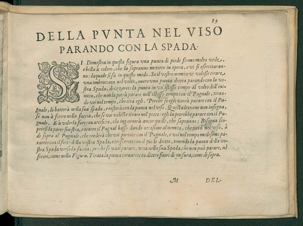 Revision as of 19:23, 12 July 2020 by Michael Chidester (talk | contribs) (→‎Not proofread: Created page with "'''DELLA PUNTA NEL VISO PARANDO CON LA SPADA.''' '''S'''''I Dimostra in questa figura una punta di piede fermo molto utile, e bella à coloro, che la sapranno mettere in oper...")
