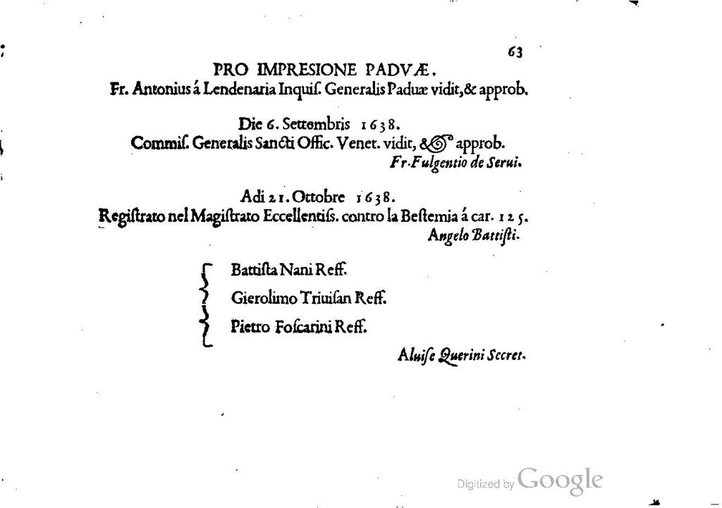 Commis. Generalis sancti Offic. Venet. vidit, &c approb.