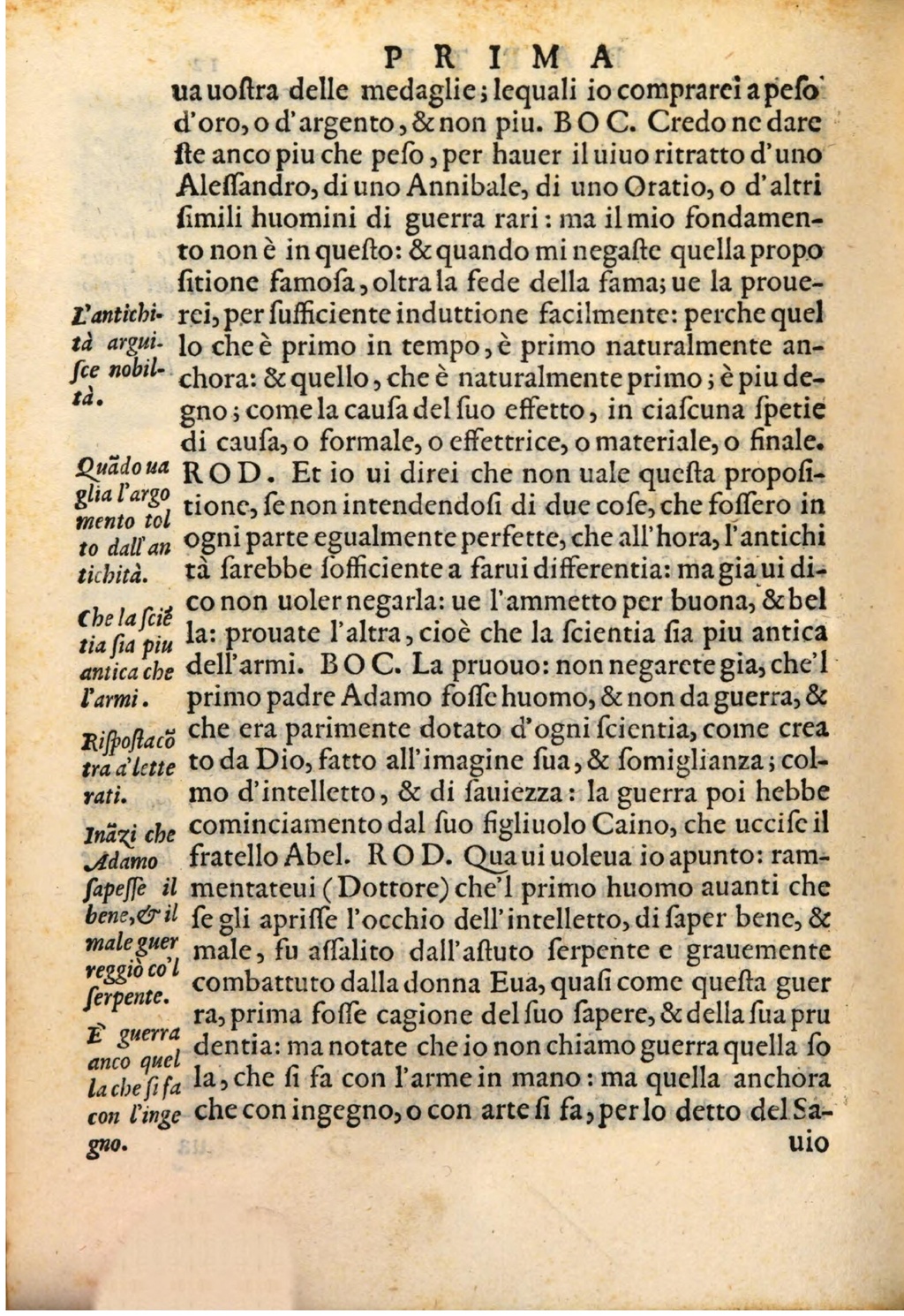 co non uoler negarla: ue l'ammetto per buona, & bet Che lafcie tiafia piu la: prouate l'altra , cioè che la fcientia fia più antica antica che dell'armi . BOC. La pruouo : non negarete gia, che'l l'armi .