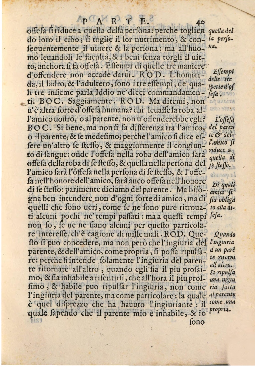 li tre infieme parla Iddio ne'dieci commandamen ti. BOC. Saggiamente . ROD . Ma ditemi , non u'è altra forte d'offefa humana? chi leuaffe la roba all'amico uoftro, o al parente, non u'offenderebbe egli?