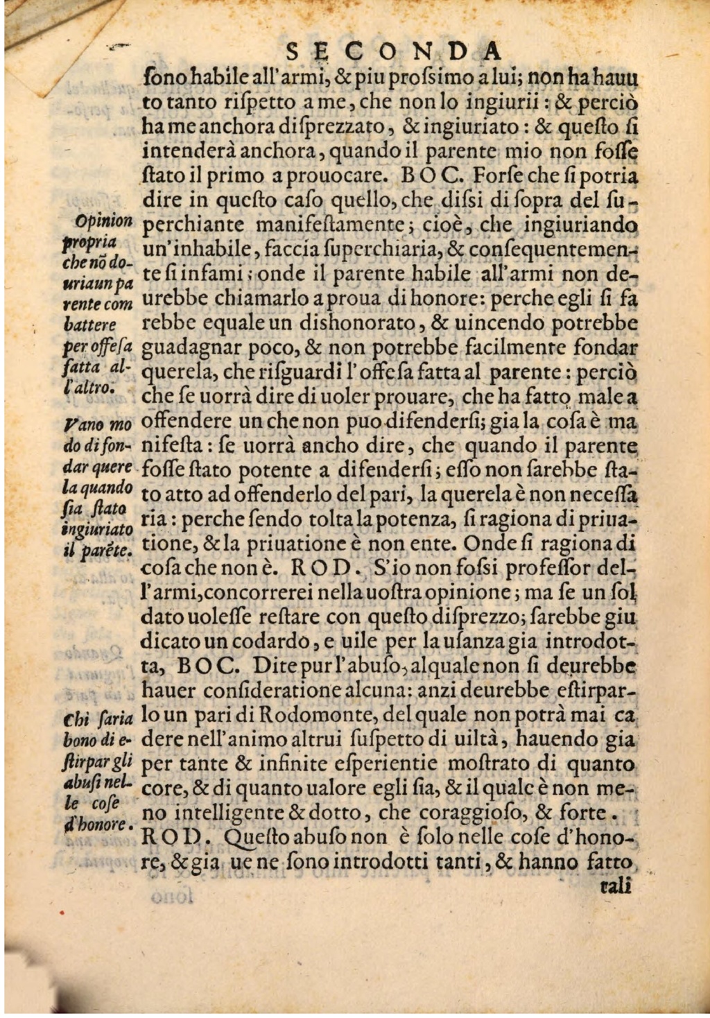 SECONDA fono habile all'armi, & piu profsimo a lui; non ha hauu to tanto riſpetto a me ,che non lo ingiurii : & perciò hame anchora difprezzato , & ingiuriato : & quefto fi intenderà anchora , quando il parente mio non foffe ſtato il primo a prouocare. BOC. Forfe che fipotria dire in quefto cafo quello, che diſsi di fopra del fuOpinion perchiante manifeftamente ; cioè , che ingiuriando confequentemenpropria chenodo- un'inhabile , faccia fuperchiaria, & te fi infami