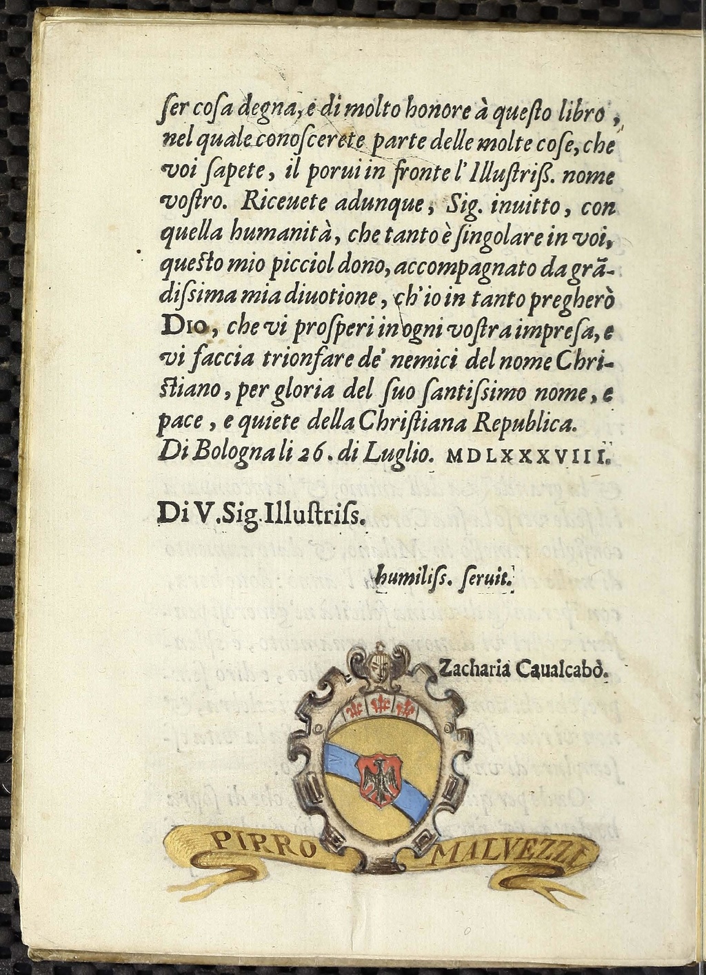 Di Bologna li 26. di Luglio. ⅯⅮⅬⅩⅩⅩⅧ.
