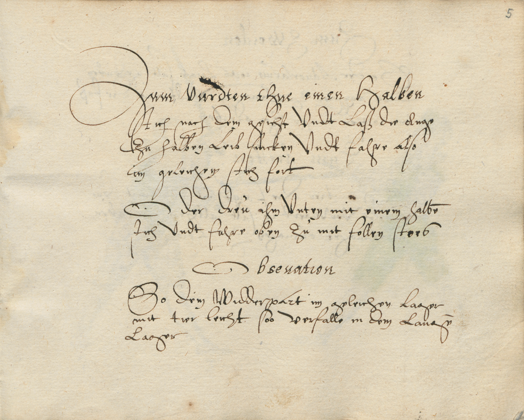 Zum vurdten thue einen halben stich nach dem gesicht undt laß die clinge zu halben leib sincken undt fahre also im geleichen stich fort.