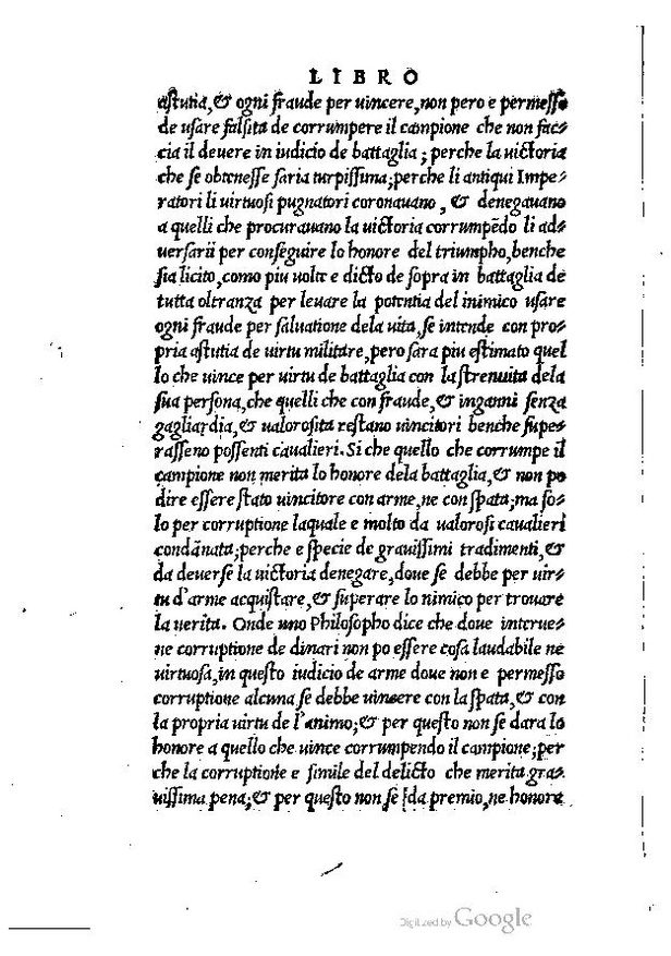 Revision as of 10:52, 17 March 2024 by ADordor (talk | contribs) (→Not proofread: Created page with "astutia, & ogni fraude per vincere, non pero e permesso de usare falsita de corrumpere il campione che non faccia il devere in iudicio de battaglia; perche la victoria che se...")