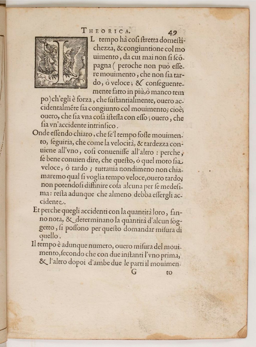 IL tempo há cosi stretta domestichezza, & congiuntione col mouimento, da cui mai non si scópagna (peroche non può essere mouimento, che non sia tardo, ò veloce; & conseguentemente fatto in più, ò manco tempo) ch’egli è forza, che sustantialmente, overo accidentalméte sia congiunto col mouimento; cioè; overo, che sia una cosa istesta con esso; overo, che sia un’accidente intrinsico.