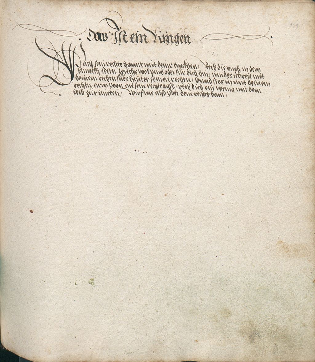 Fach sein rechte hannt mit deinr linckhen, Reib die umb, in dein linnckh seitn zeuchs wol umb oder fur dich hin, inndes schreit mit deinem rechtn fues hinter seinen rechtn, unnd stos in mit deinem rechtn arm vorn an sein rechte agsl, reib dich ein wenig mit dem leib zur lincken, Wirf ine also yber dein rechts bain.