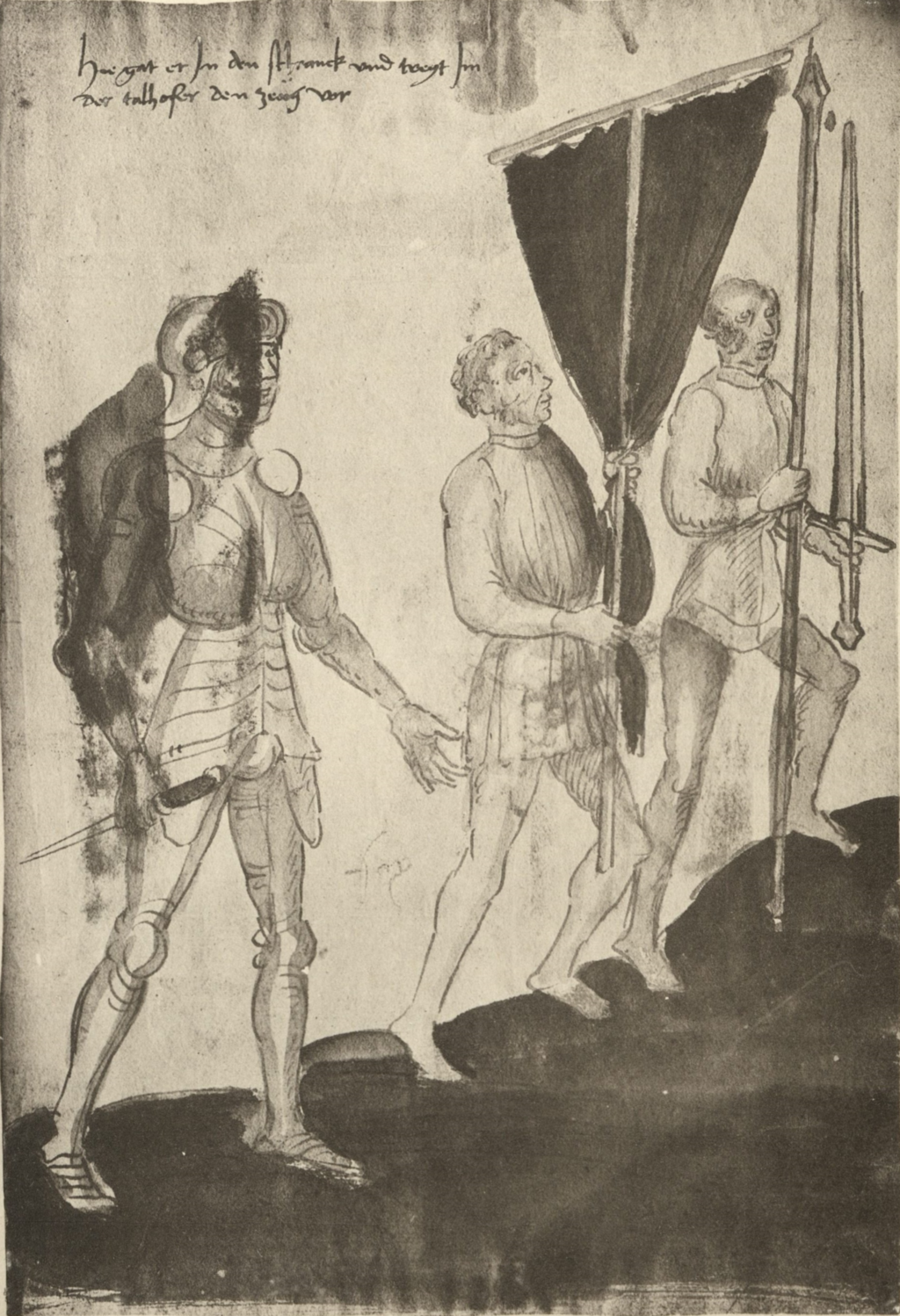 Hie gat er In den schranck vnd tregt Im der talhoffer den zeüg vor.