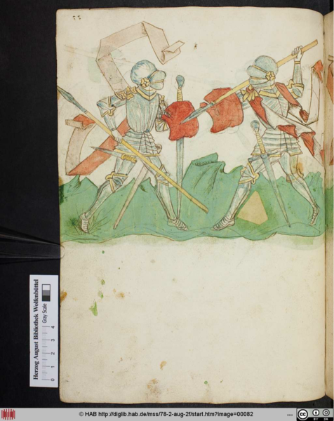 Do you have permission to re-use this image? Just because scans appear on Wiktenauer does not mean that they are free to use. Wiktenauer is a 501(c)(3) nonprofit, and many of the scans we host are only licensed for nonprofit use. In other cases, the scans have no standard license and Wiktenauer has received special permission to host them (and can't grant that permission to anyone else). The license terms appear in the Copyright and License Terms box at the bottom of the page that sent you here. When in doubt, always check with the museum or library that owns a manuscript before publishing or otherwise reusing its scans. |