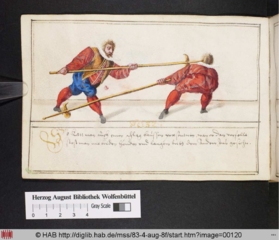 Do you have permission to re-use this image? Just because scans appear on Wiktenauer does not mean that they are free to use. Wiktenauer is a 501(c)(3) nonprofit, and many of the scans we host are only licensed for nonprofit use. In other cases, the scans have no standard license and Wiktenauer has received special permission to host them (and can't grant that permission to anyone else). The license terms appear in the Copyright and License Terms box at the bottom of the page that sent you here. When in doubt, always check with the museum or library that owns a manuscript before publishing or otherwise reusing its scans. |