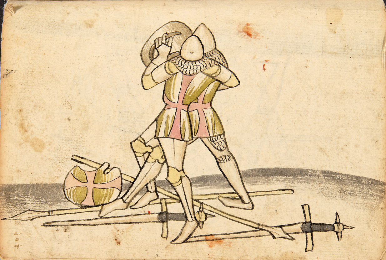 Do you have permission to re-use this image? Just because scans appear on Wiktenauer does not mean that they are free to use. Wiktenauer is a 501(c)(3) nonprofit, and many of the scans we host are only licensed for nonprofit use. In other cases, the scans have no standard license and Wiktenauer has received special permission to host them (and can't grant that permission to anyone else). The license terms appear in the Copyright and License Terms box at the bottom of the page that sent you here. When in doubt, always check with the museum or library that owns a manuscript before publishing or otherwise reusing its scans. |