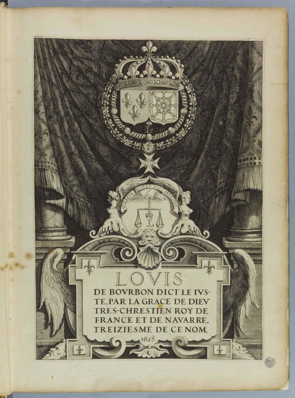 LOUIS DE BOURBON DICT LE IUSTE, PAR LA GRACE DE DIEU TRES-CHRESTIEN ROY DE FRANCE ET DE NAVARRE, TREIZIESME DE CE NOM.