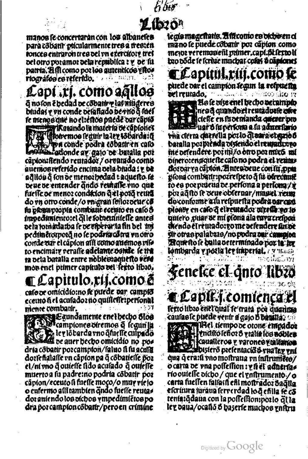 ¶ Capit[ulo] .i. comiença el sexto libro en el qual se trata poe quantas causas se puede venir a gajo [de] batalla.