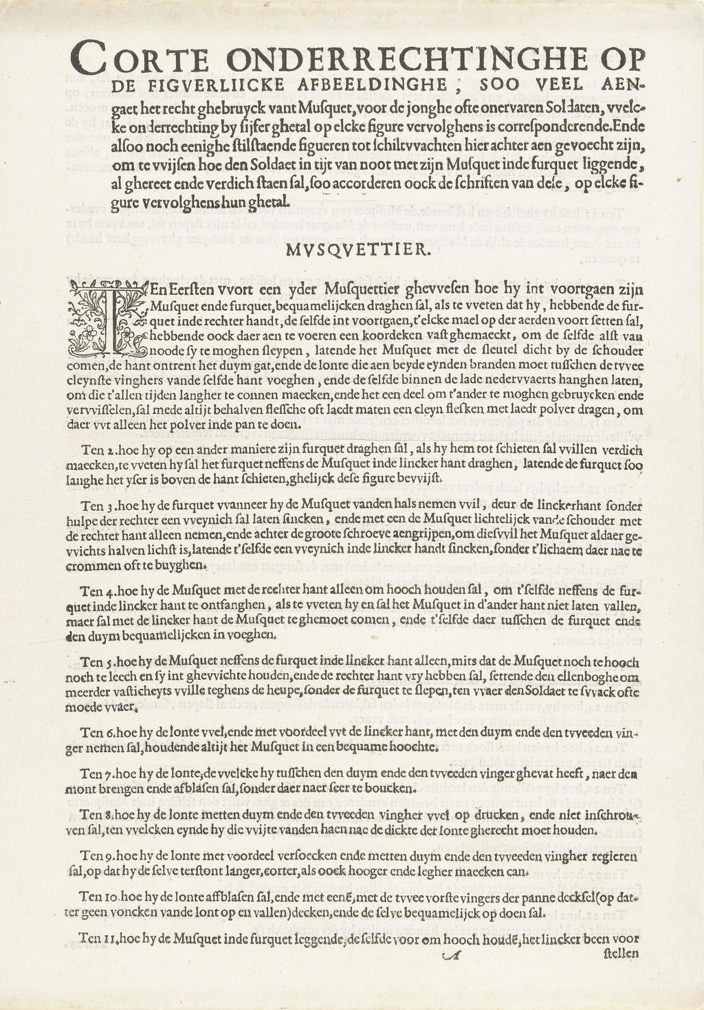 Met schriftelÿcke onderrechtinghe Ten dienste van alle liefhebbers der Wapenen, oock mede voor alle Capiteÿnen ende bevelhebbers, om hier wt hun Jonge oft onervaren soldaten de volcomen handelinge van dese wapenen te beter aentewÿsen.
